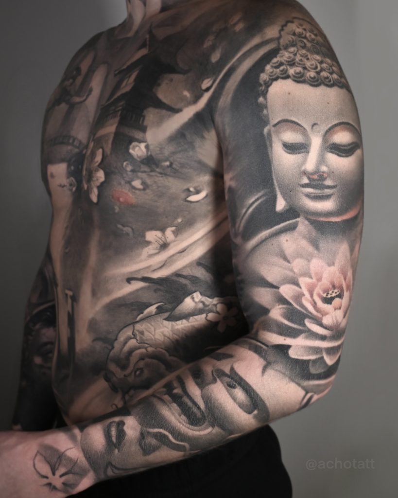 Black and grey tattoos remain timeless. This style is particularly popular in tattoo shops Glasgow Scotland due to its dramatic contrast and long-lasting quality.